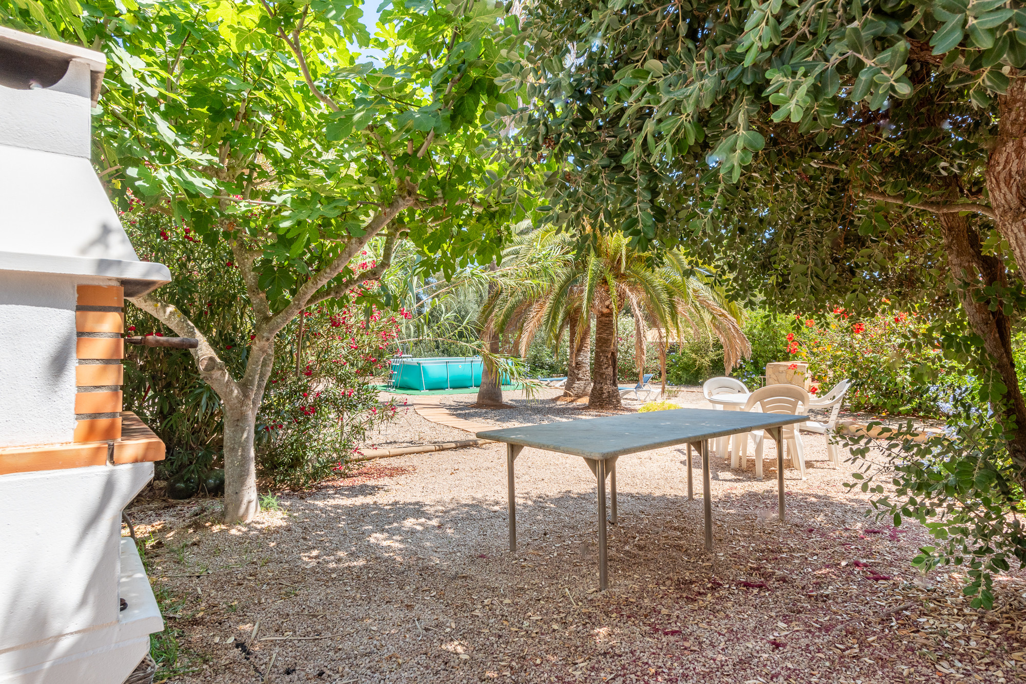 El exterior cuenta con un encantador jardín que ofrece mobiliario para disfrutar del aire libre, así como una barbacoa para preparar comidas y una ducha exterior. También tiene una piscina privada, perfecta para refrescarse y relajarse en un entorno íntimo.