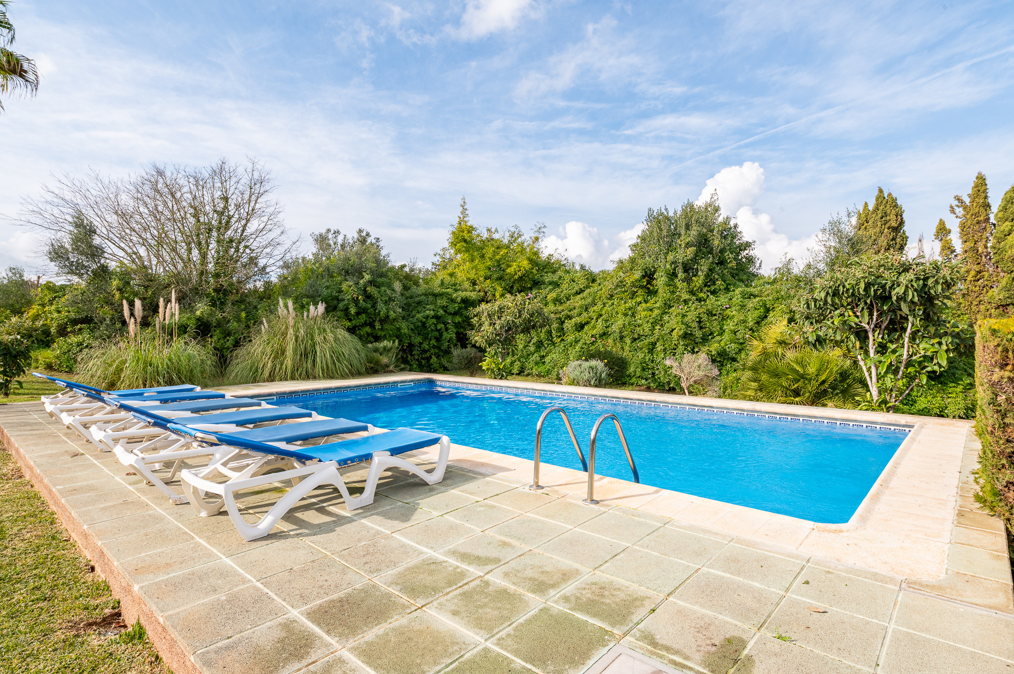 A la casa se accede a través de un camino que separa la propiedad de la casa más cercana y que conecta directamente con el amplio terreno posterior. Ahí encontrará el aparcamiento privado y cubierto para varios vehículos, la piscina privada con hamacas y sombrillas, una ducha al aire libre, una gran terraza cubierta con mesa y sillas y un enorme ficus que dan personalidad a la propiedad y hacen del jardín un lugar ideal para relajarse y leer a la sombra.