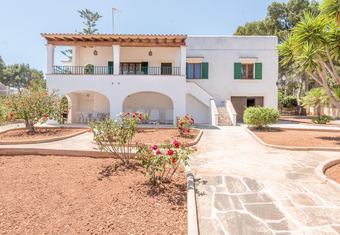 Chalet de dos plantas para 8 personas en Portocolom, cuenta con 4 habitaciones, 3 baños y piscina elevada.
